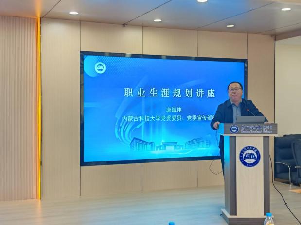 10月21日,市人社局就业促进科科长周磊、市就业服务中心创业指导科科长吕锡安进行了就业创业政策宣讲,解读利好政策;内蒙古科技大学党委委员、宣传部长唐巍伟以职业生涯规划为主题,帮助学生锚定职业方向;创新创业教育学院院长冯平围绕“创新创业意识培养”进行讲授,激发学生创新思路,启迪学生创业思维。