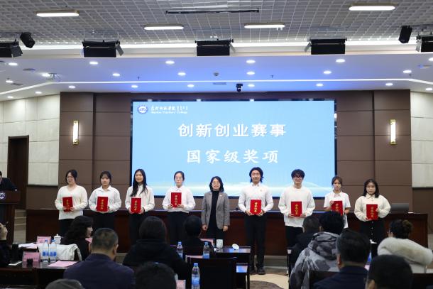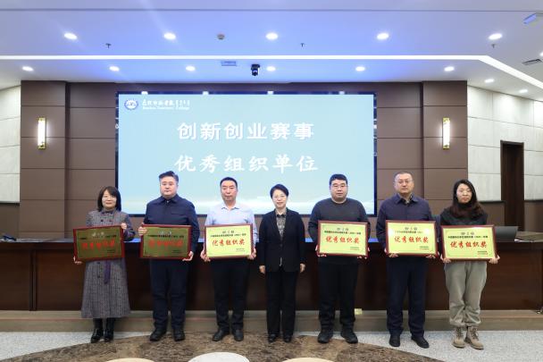 会上举行了颁奖仪式,对在2025年各级各类创新创业大赛中取得优异成绩的学生团队、指导教师和优秀组织单位予以表彰。