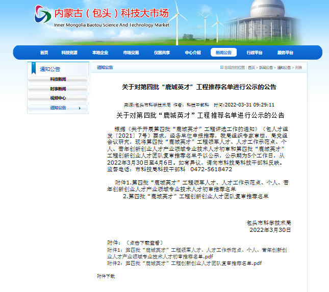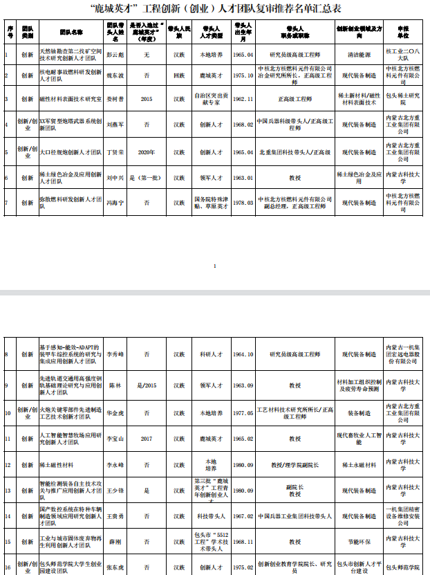 《包头师范学院大学生创业园建设团队》被推荐为“鹿城英才”工程创新创业人才团队